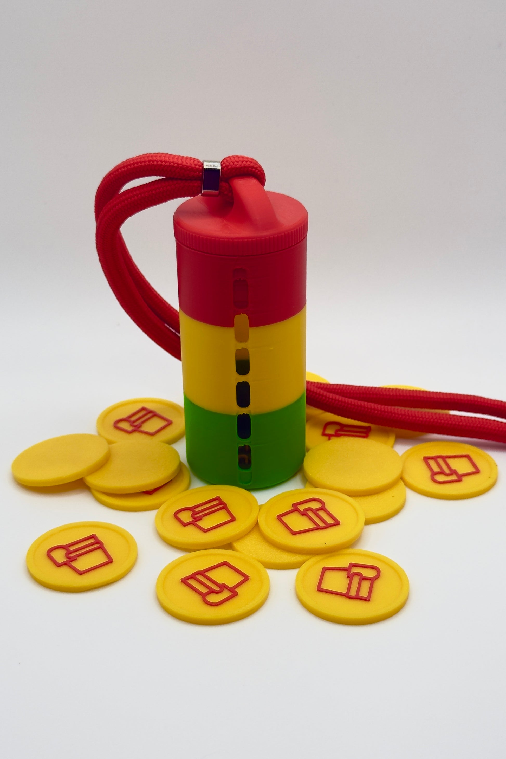 Vous en avez assez de fouiller dans vos poches ou votre sac pour trouver vos jetons de Carnaval ? Avec le Porte-jetons « Alaaf Limburg », vous avez toujours vos jetons à portée de main, rangés en toute sécurité. Conçu pour les événements où les jetons en plastique sont utilisés comme moyen de paiement, le porte-jetons garde vos jetons en sécurité pendant que vous vous amusez !
